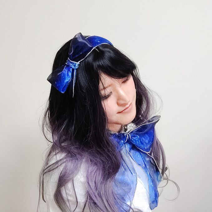 《華やかな宇宙柄のオーガンジー×ラメ入り糸×幅広カチューシャ》